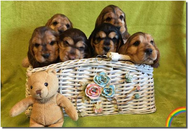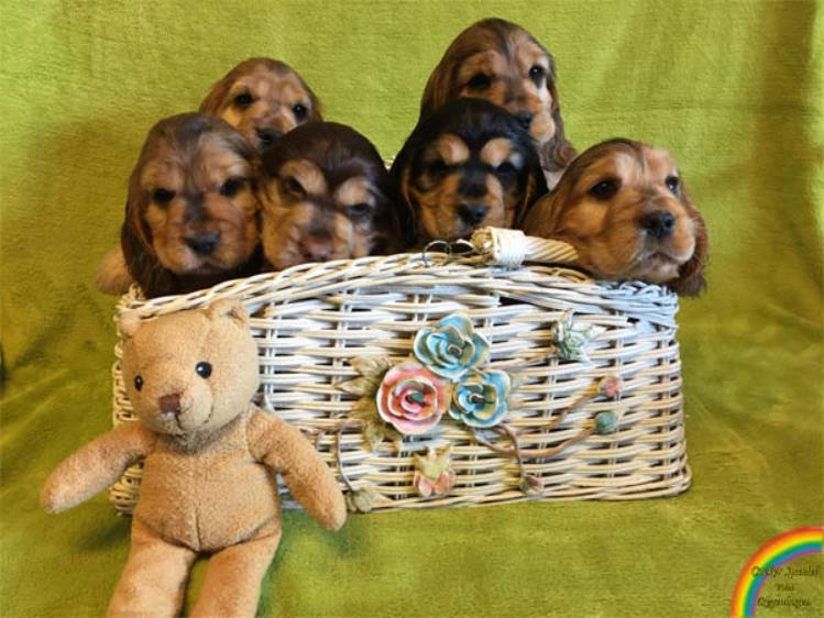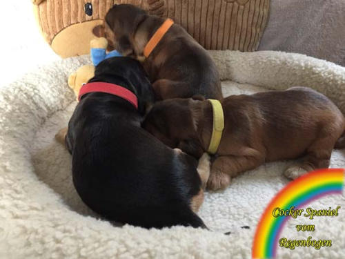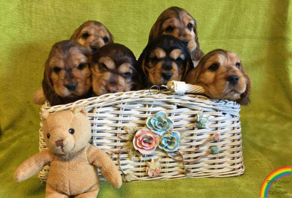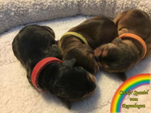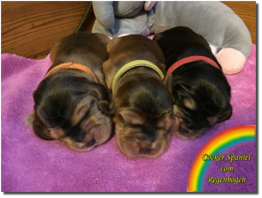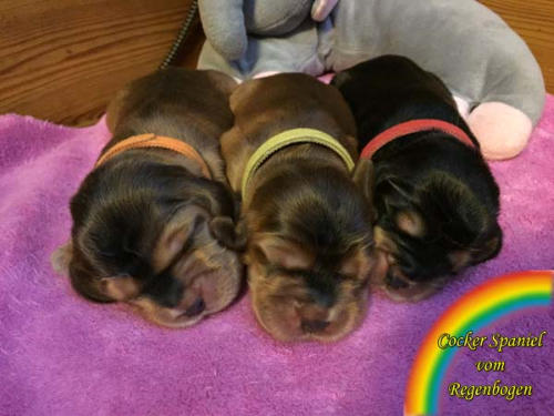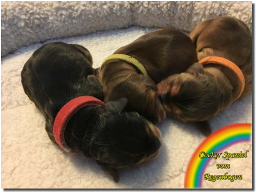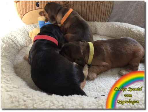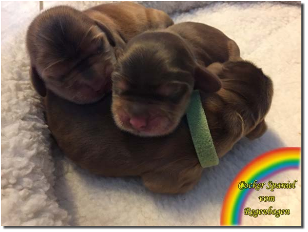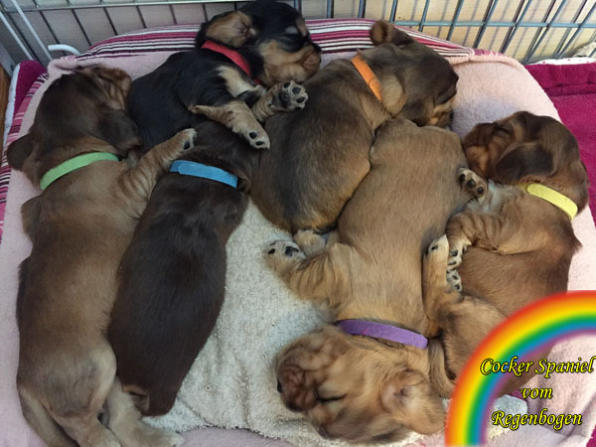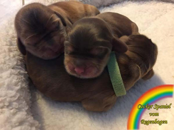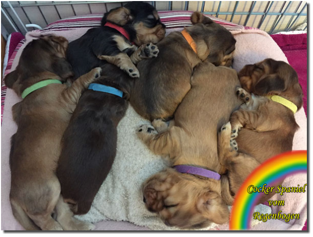 gesunde Welpen auf die Welt, drei Hündinnen und drei Rüden