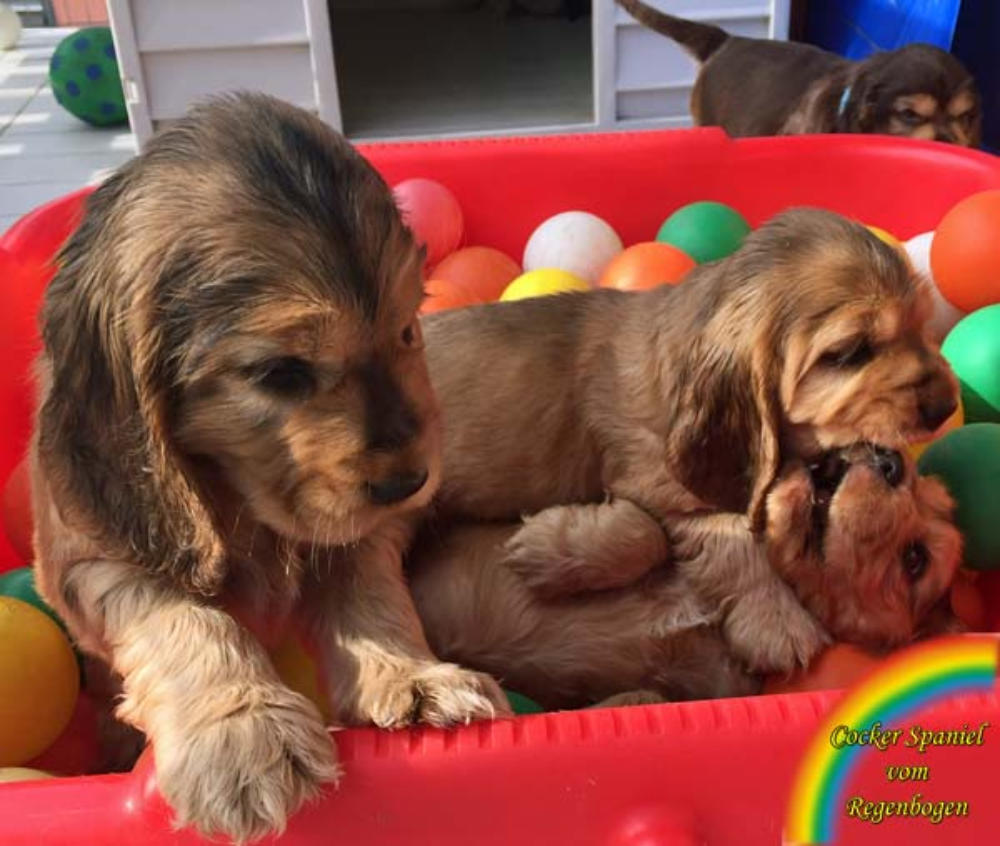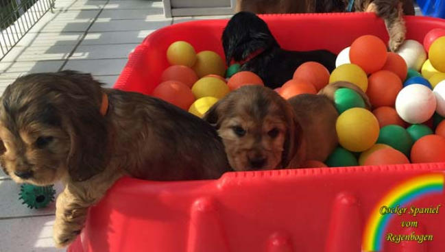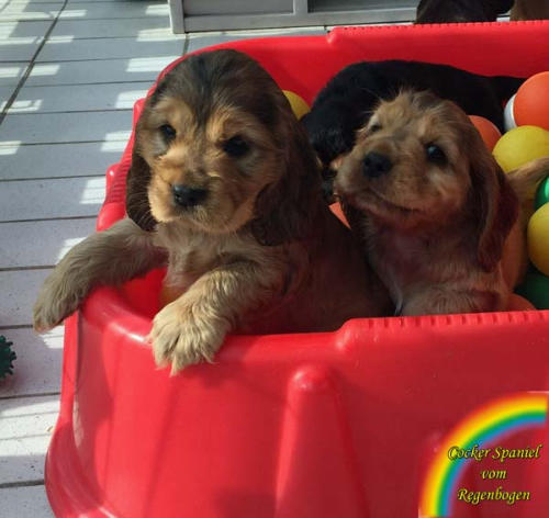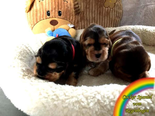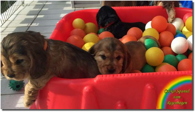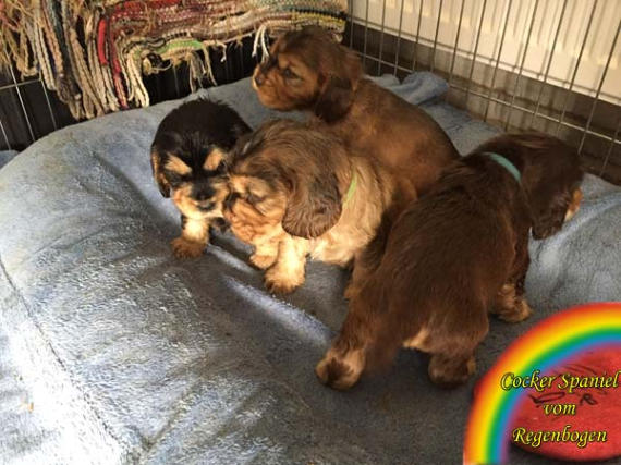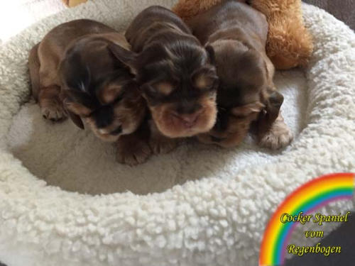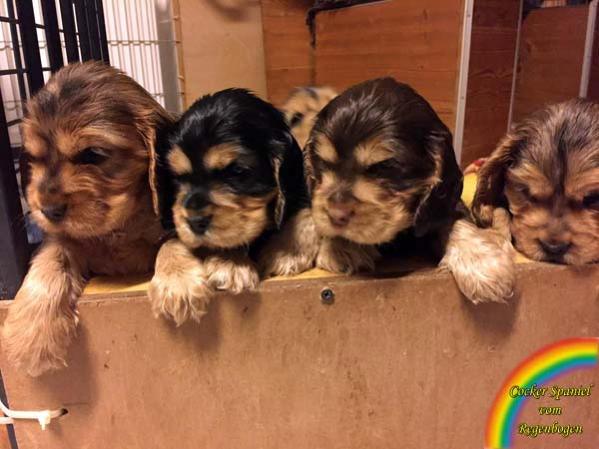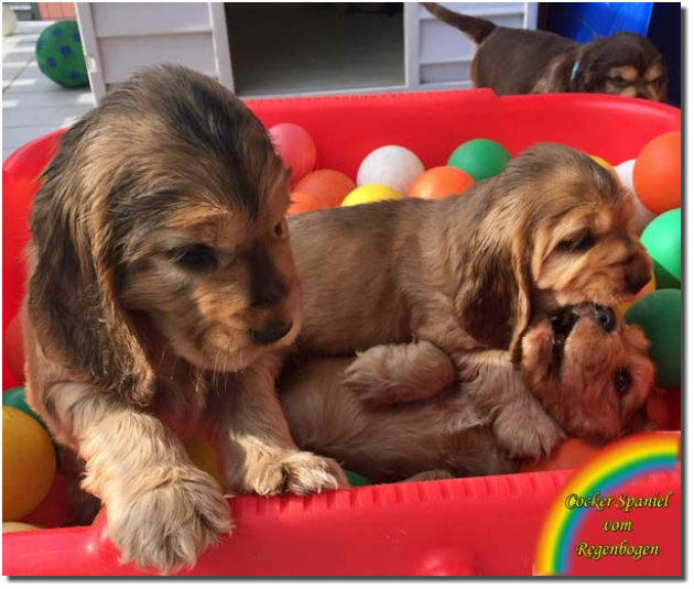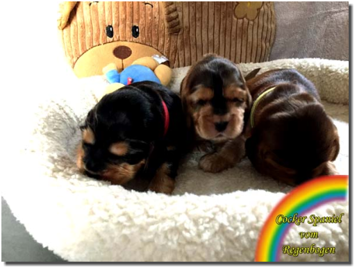 gesunde Welpen auf die Welt, drei Hündinnen und drei Rüden